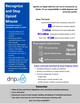 The Food and Drug Administration offers some valuable guidance in The Opioid Epidemic: What Veterinarians Need to Know. The FDA provides the following information on how to tell if a client or employee is potentially abusing opioids.